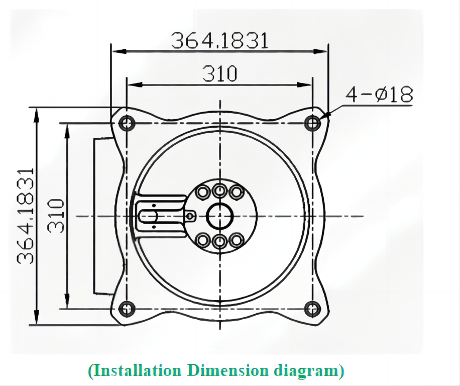 The motion range and installation dimensions diagram